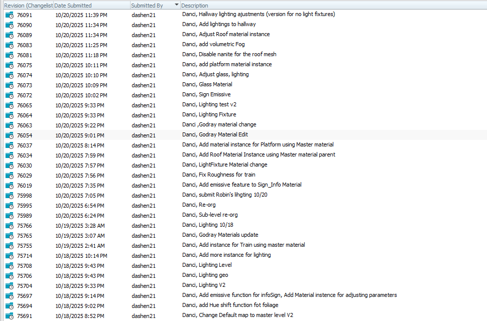Adjusted misc lighting for different area, changed volumetric fog and Godrays to enhance visual depth and realism. Adjusted LightBeam materials and position for the train, reinforcing focal contrast and guiding the viewer's attention.